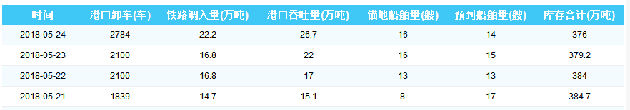 2018年5月24日秦皇岛港港口库存