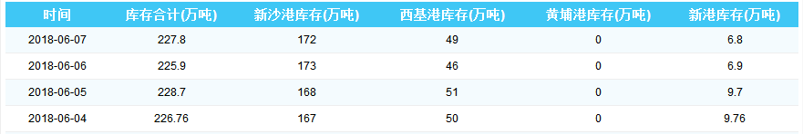 2018年6月7日广州港港口库存