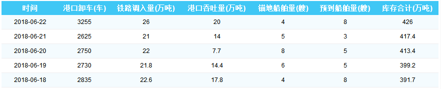 2018年6月22日曹妃甸港港口库存