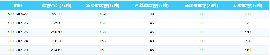 2018年7月27日广州港港口库存