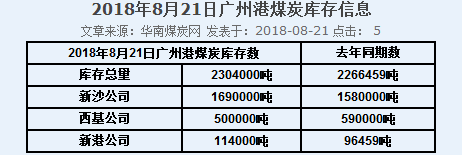 2018年8月21日广州港港口库存