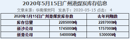 2020年5月15日广州港港口库存
