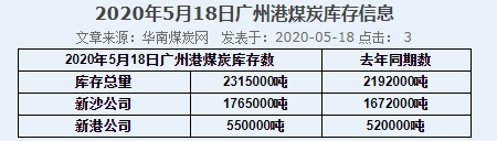 2020年5月18日广州港港口库存
