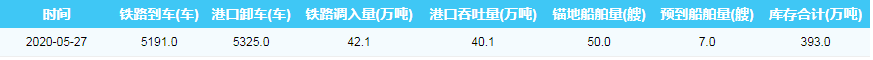 2020年5月27日秦皇岛港港口库存