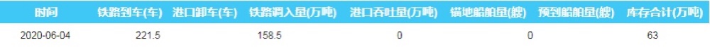 2020年6月4日秦皇岛港港口库存