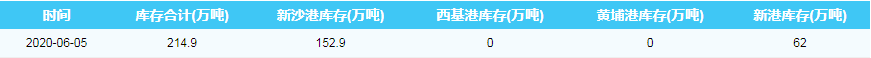 2020年6月5日广州港港口库存