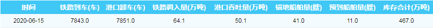 2020年6月15日秦皇岛港港口库存