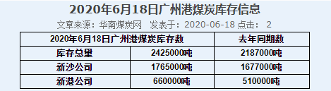 2020年6月18日广州港港口库存