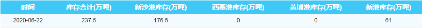 2020年6月22日广州港港口库存