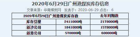 2020年6月29日广州港港口库存
