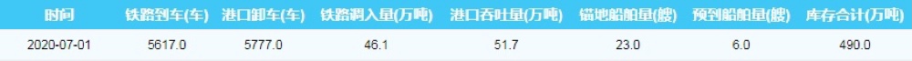2020年7月2日秦皇岛港港口库存