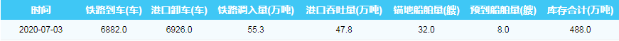 2020年7月3日秦皇岛港港口库存