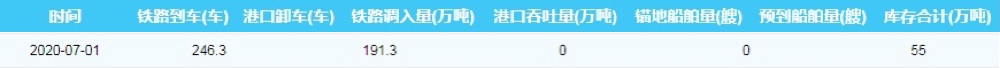 2020年7月1日广州港港口库存
