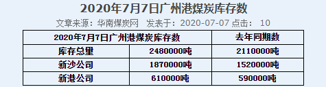 2020年7月7日广州港港口库存