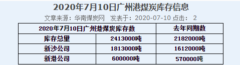 2020年7月10日广州港港口库存