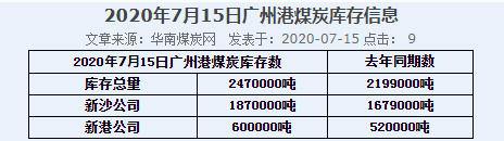2020年7月15日广州港港口库存