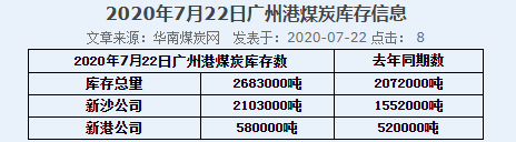 2020年7月22日广州港港口库存