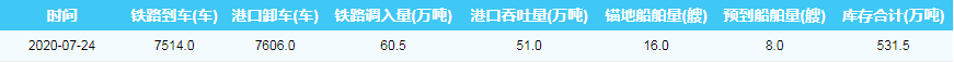 2020年7月24日秦皇岛港港口库存