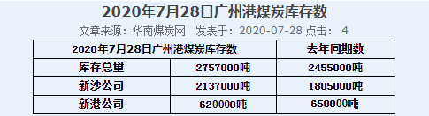 2020年7月28日广州港港口库存