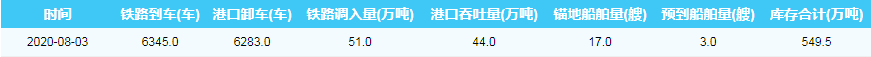 2020年8月3日秦皇岛港港口库存