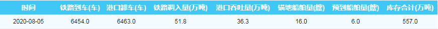 2020年8月5日秦皇岛港港口库存