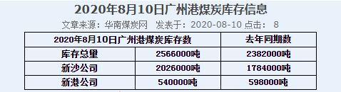 2020年8月10日广州港港口库存