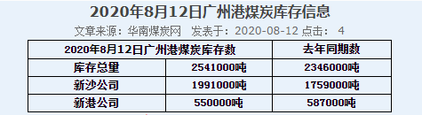 2020年8月12日广州港港口库存