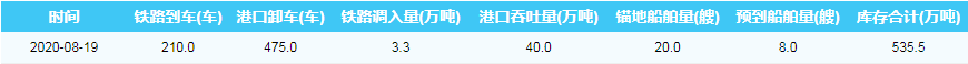 2020年8月19日秦皇岛港港口库存