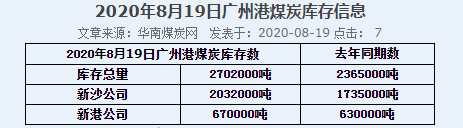 2020年8月19日广州港港口库存