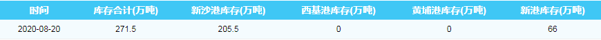 2020年8月20日广州港港口库存