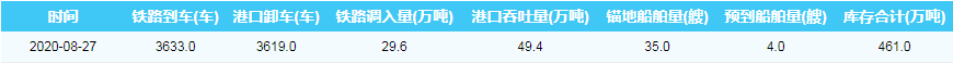 2020年8月27日秦皇岛港港口库存