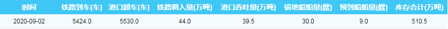2020年9月2日秦皇岛港港口库存