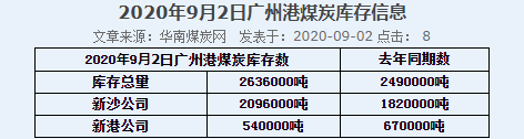 2020年9月2日广州港港口库存