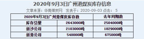 2020年9月3日广州港港口库存