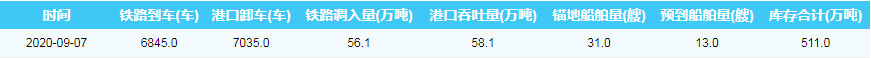 2020年9月7日秦皇岛港港口库存