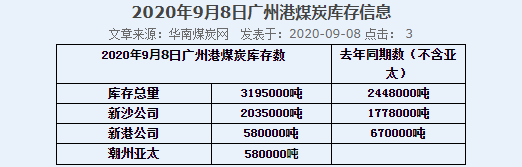 2020年9月8日广州港港口库存