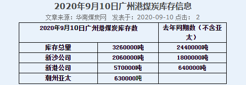 2020年9月10日广州港港口库存