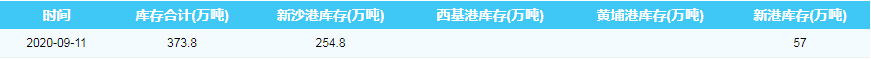 2020年9月11日广州港港口库存
