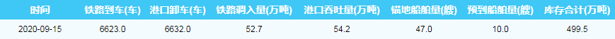 2020年9月15日秦皇岛港港口库存