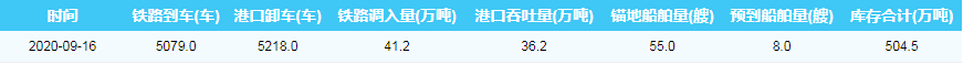 2020年9月16日秦皇岛港港口库存