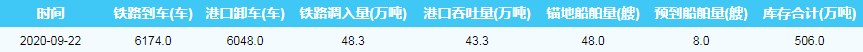 2020年9月22日秦皇岛港港口库存