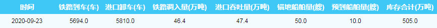 2020年9月23日秦皇岛港港口库存