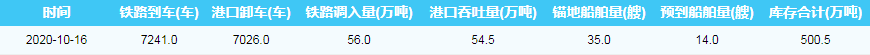 2020年10月16日秦皇岛港港口库存