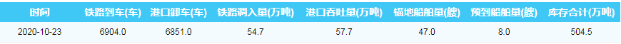 2020年10月23日秦皇岛港港口库存