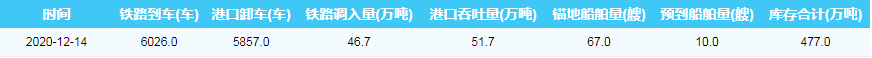 2020年12月14日秦皇岛港港口库存