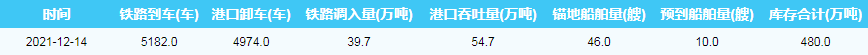 2021年12月14日秦皇岛港港口库存
