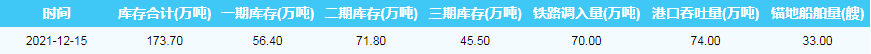 2021年12月15日环渤海港港口库存