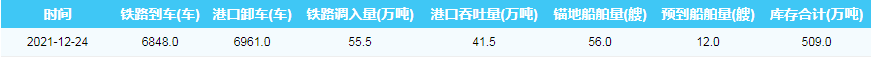 2021年12月24日秦皇岛港港口库存