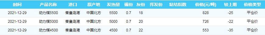2021年12月29日秦皇岛港港口库存