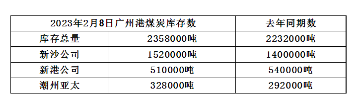 2023年2月8日广州港港口库存